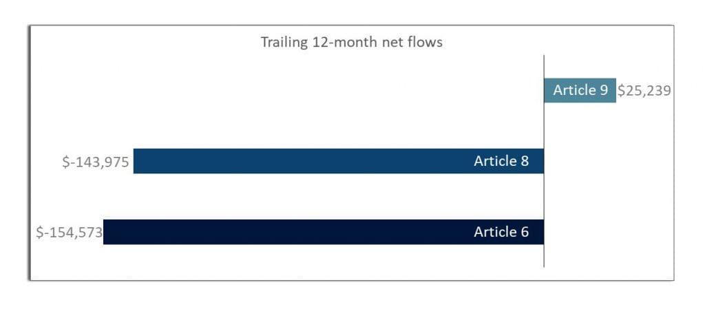 Figure 1: Trailing 12-month net flows by SFDR article (in millions)