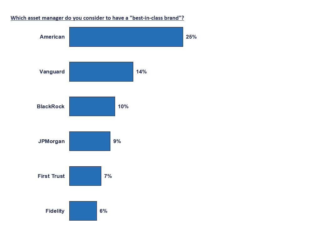 A quarter of all advisors believe American Fund’s brand is best-in-class, but other firms are recognized for their strengths