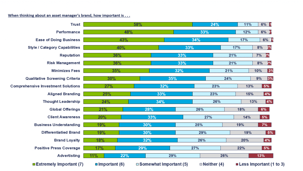 Advisors rate trust, performance, and ease of business as the three most critical factors in defining an asset manager’s brand