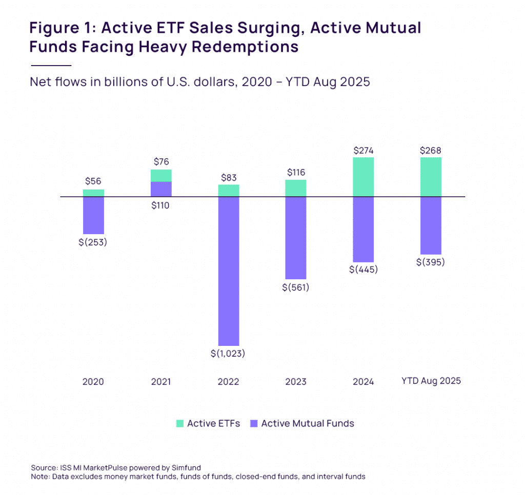 Fund managers are likely to find a receptive audience. Our analysis of institutions’ ETF holdings shows advisors at large wealth managers like LPL Financial and Morgan Stanley have been investing substantial sums in active ETFs. Our survey data also show that advisors increasingly prefer ETFs over other vehicle types; 60% of advisors surveyed by ISS MI in 2024 said they would prefer to access a favored manager in ETF form, versus just 15% for mutual funds. Many flagship strategies still exist only as mutual funds, but that’s likely to change as more funds add ETF share classes. When given a real choice, advisors say they’ll take it.
