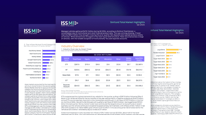 Managed vehicles gathered $476.3 billion during Q2 2024, according to Simfund Total Market, a consolidated view of institutional and retail financial product data.