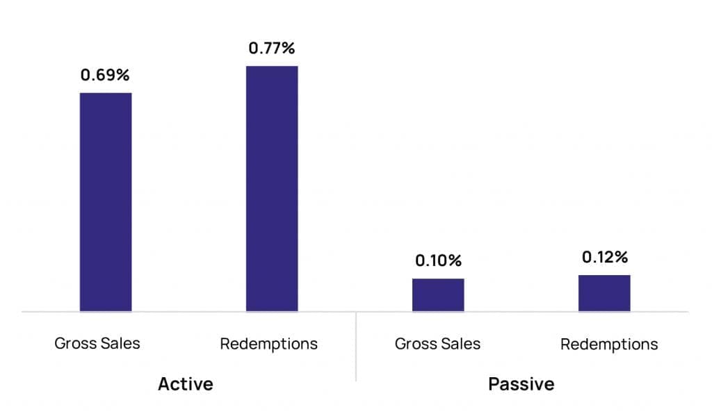 Q3 gross sales and redemptions of underlying equity funds by active and passive management